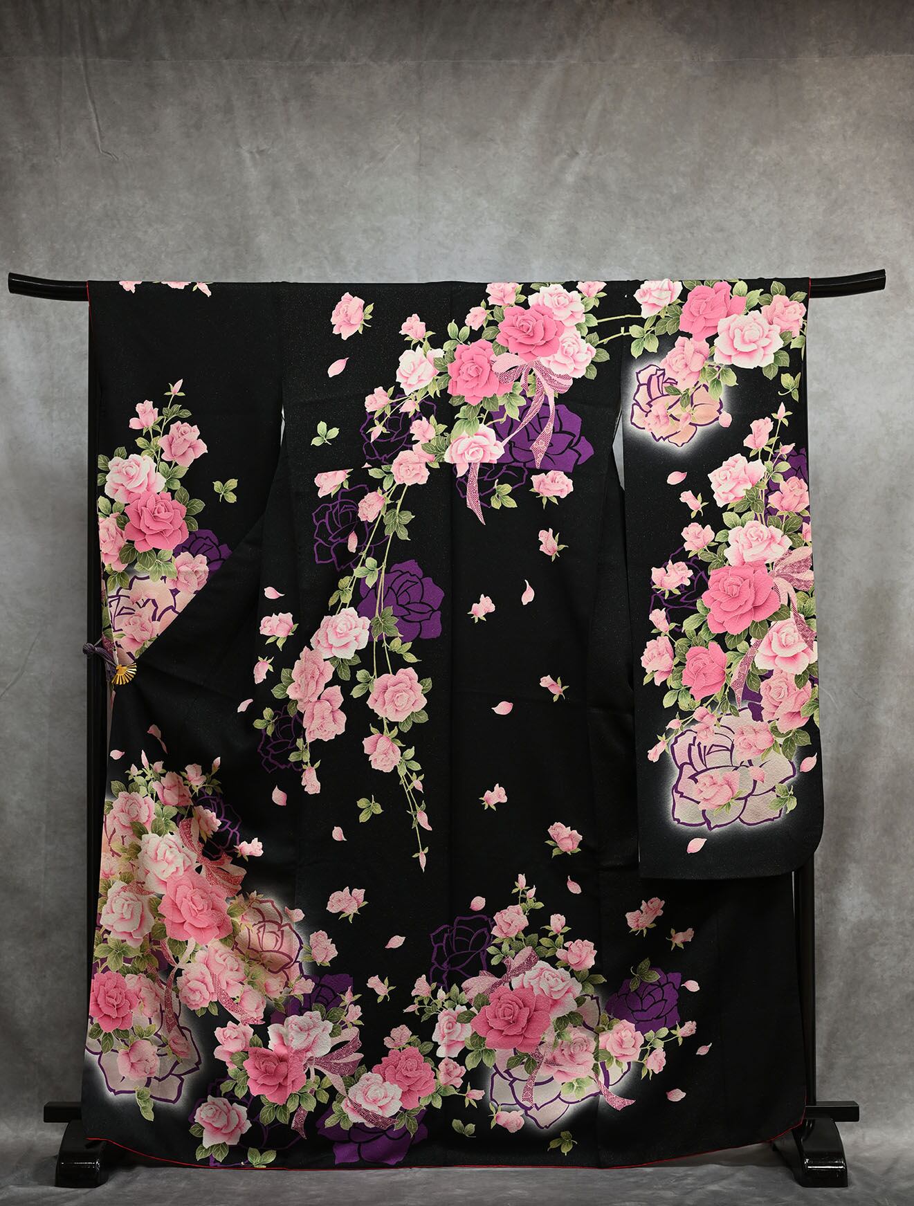 黒ラメ地・ピンク紫バラ【L】